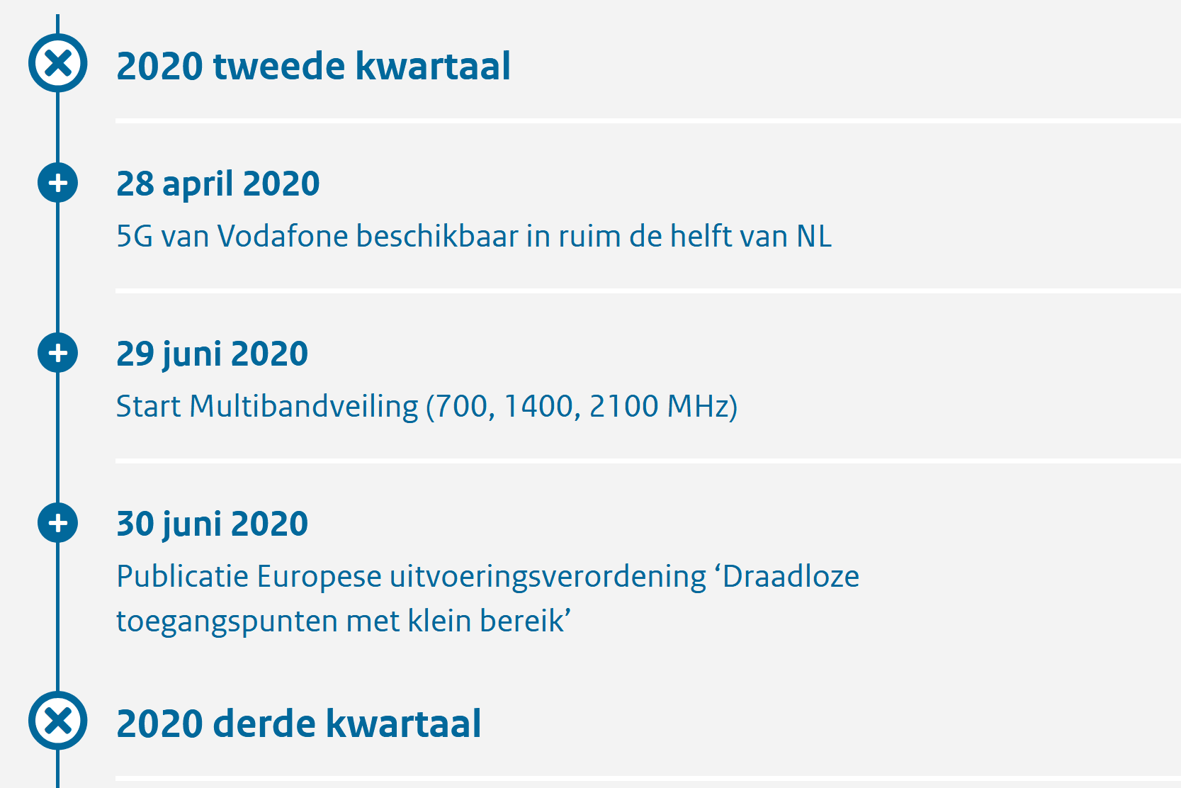 Alle voor gemeenten relevante gebeurtenissen en ontwikkelingen op het gebied van snelle mobiele connectiviteit op een rij gezet.